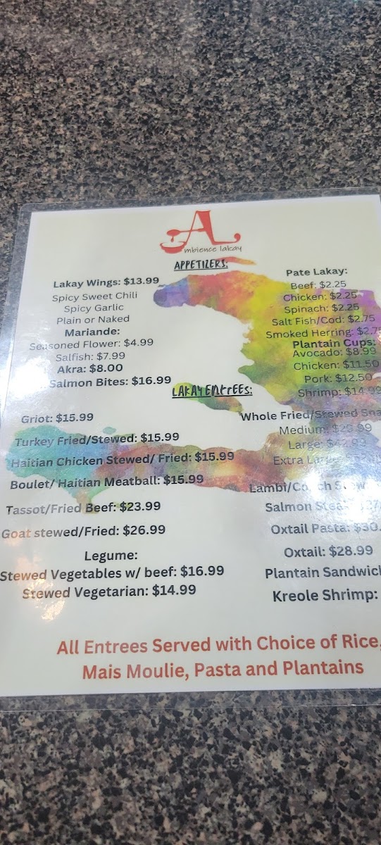 Welcome to Ambience Lakay, a vibrant restaurant that brings the rich flavors of Haitian cuisine to Stone Mountain, GA. Known for its welcoming atmosphere and friendly service, the restaurant offers a diverse menu that is sure to tantalize your taste buds.